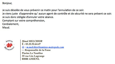 Une fois de plus la séance du NAUTILUS est annulée pour raison d'absence d'agent de contrôle et de