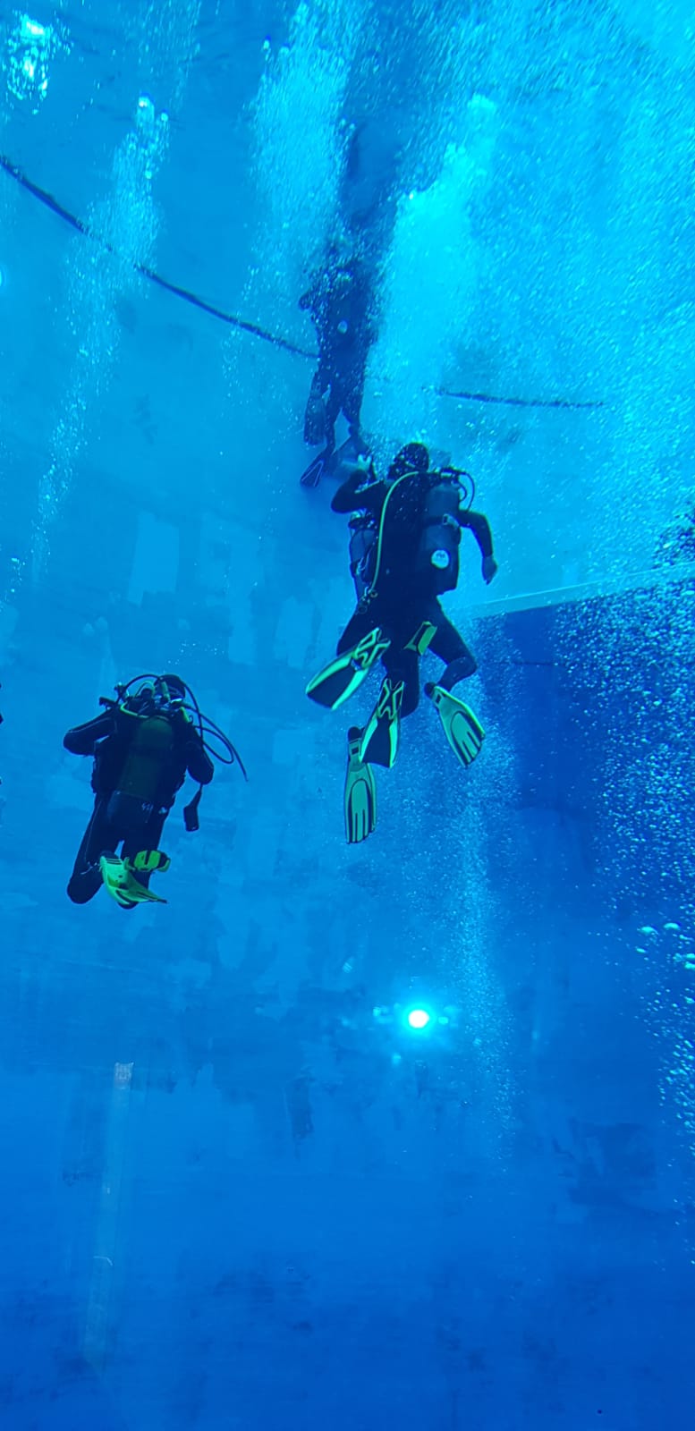 Durant nos deux plongées de 45, voir 50 minutes, enchainement des exercices pour toutes les palanquées, suivies du guidage et de la visite de l’envers des décors du bassin puis pour les plus studieux de beaux parachutes pendant que d’autres préfèrerons une séance détente de ballon.