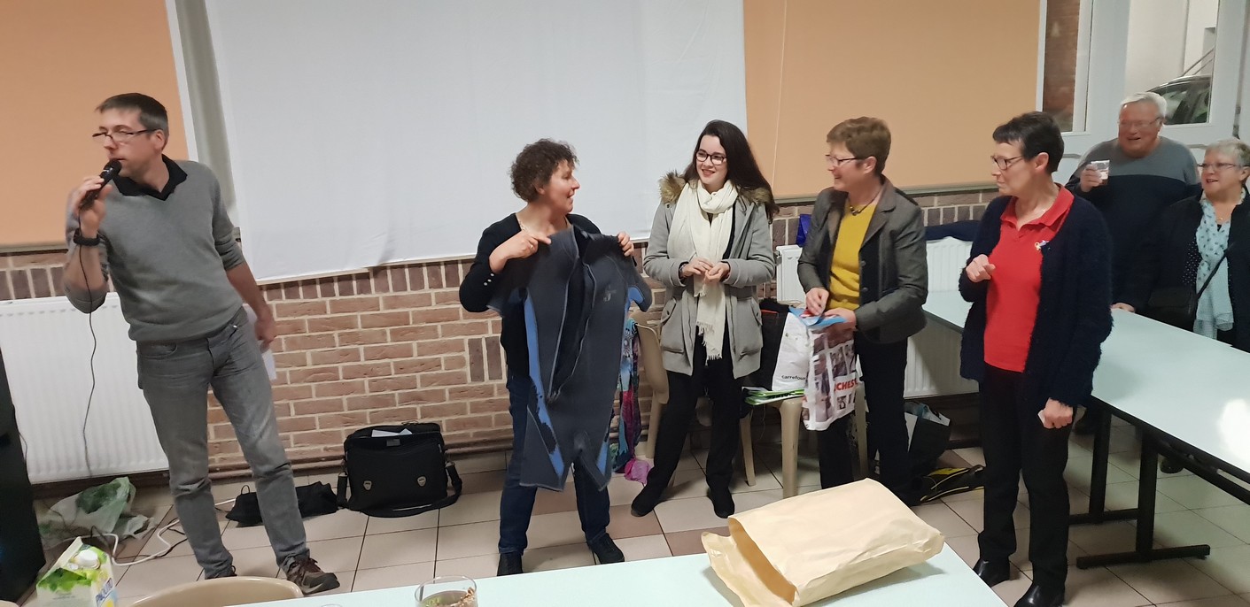 A l'issue de l'assemblée, le tirage au sort de la tombola a vu de nombreux lots distribués en particulier des pièces de collection telles que la combinaison fétiche de Pascal et la photo portrait de notre président. 😊